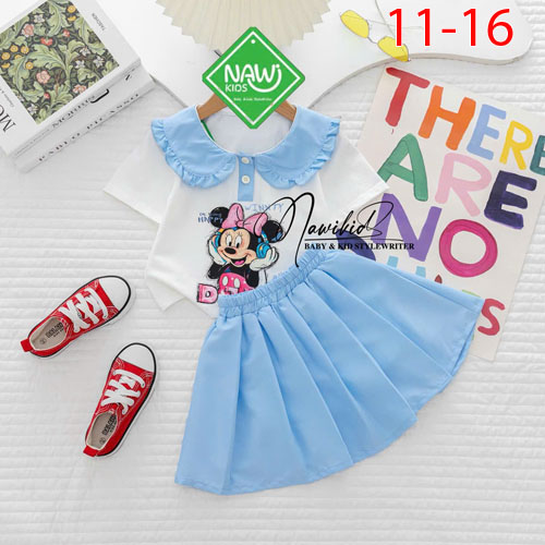 A505281 - Set chân váy Mickey style cute áo thun cotton 4c cổ trụ sen chạy bèo chân váy xếp ly chất