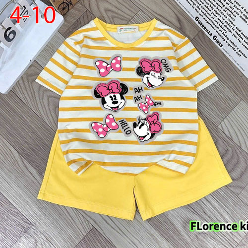 A506015 - Bộ đùi dễ thương cho bé gái thun cotton 4c áo phối sọc in Mickey_Size 4-10