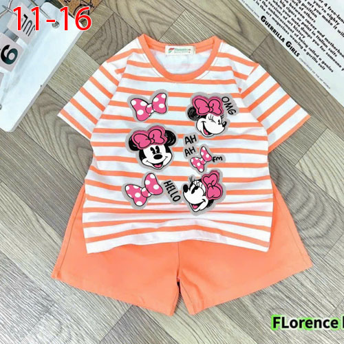 A506030 - Bộ đùi dễ thương cho bé gái thun cotton 4c áo phối sọc in Mickey_Size 11-16