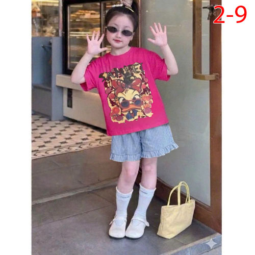 A506033 - Set bé gái áo chất thun cotton in Vịt quần đùi chất lenin_Size 2-9
