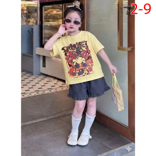A506040 - Set bé gái áo chất thun cotton in Vịt quần đùi chất lenin_Size 2-9