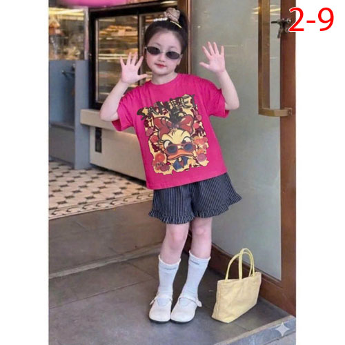 A506042 - Set bé gái áo chất thun cotton in Vịt quần đùi chất lenin_Size 2-9