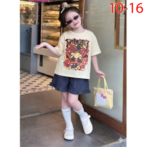 A506046 - Set bé gái áo chất thun cotton in Vịt quần đùi chất lenin_Size 10-16
