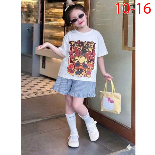 A506050 - Set bé gái áo chất thun cotton in Vịt quần đùi chất lenin_Size 10-16