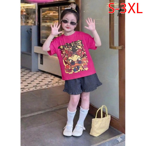 A506053 - Set bé gái áo chất thun cotton in Vịt quần đùi chất lenin_Size S-3XL