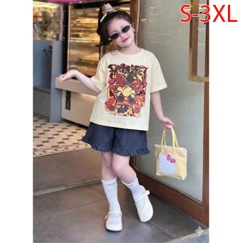 A506056 - Set bé gái áo chất thun cotton in Vịt quần đùi chất lenin_Size S-3XL