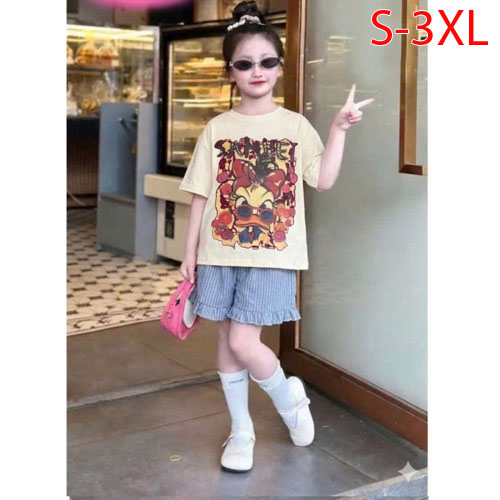 A506057 - Set bé gái áo chất thun cotton in Vịt quần đùi chất lenin_Size S-3XL