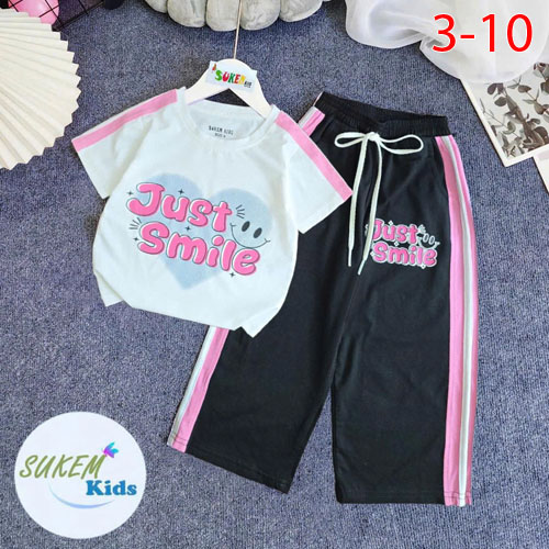 A506113 - Set suông áo may chạy viền thể thao phun cham trái tim quần dài ống suông pom hip hop_Size