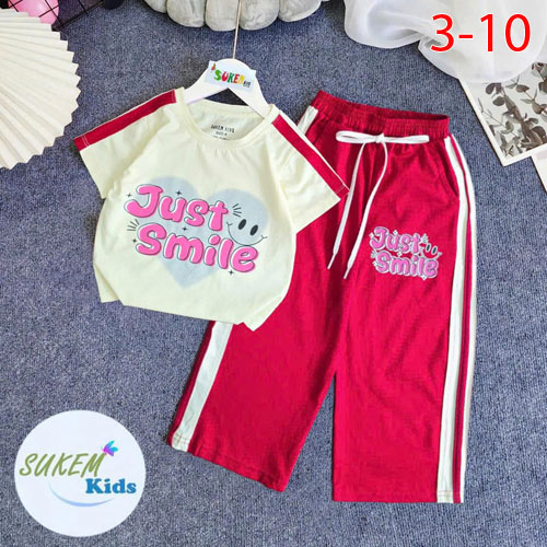 A506118 - Set suông áo may chạy viền thể thao phun cham trái tim quần dài ống suông pom hip hop_Size