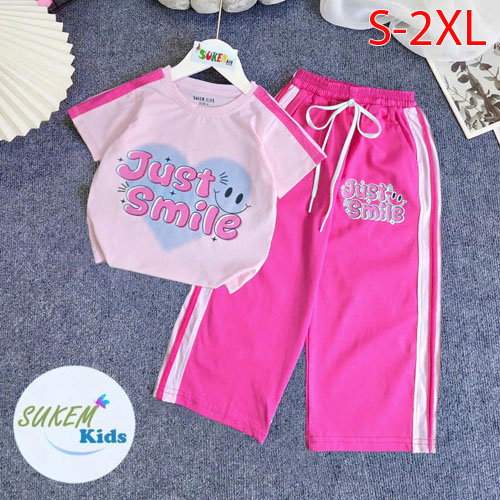 A506128 - Set suông áo may chạy viền thể thao phun cham trái tim quần dài ống suông pom hip hop_Size