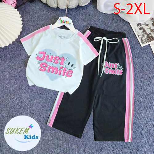 A506130 - Set suông áo may chạy viền thể thao phun cham trái tim quần dài ống suông pom hip hop_Size