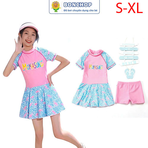 A506354 - Đồ bơi bé gái big size HAPPY SUMMER 2026 tay ngắn có váy liền che bụng_Size S-XL