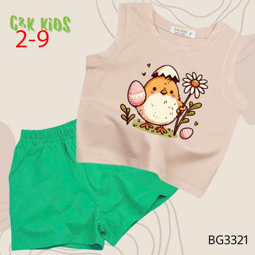 A506388 - Bộ quần đùi áo sát nách bé gái thun coton 4c in gà con_Size 2-9