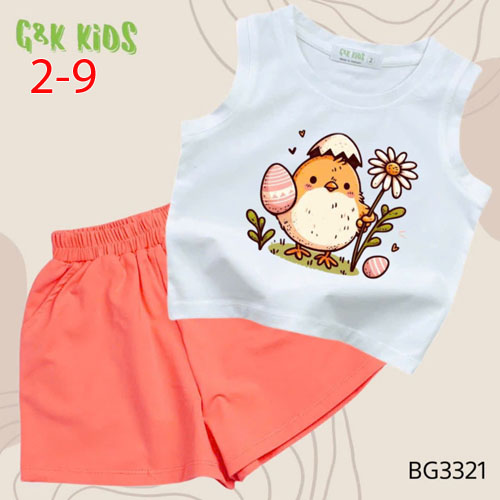 A506390 - Bộ quần đùi áo sát nách bé gái thun coton 4c in gà con_Size 2-9