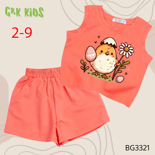 A506397 - Bộ quần đùi áo sát nách bé gái thun coton 4c in gà con_Size 2-9