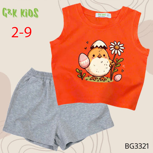 A506404 - Bộ quần đùi áo sát nách bé gái thun coton 4c in gà con_Size 2-9