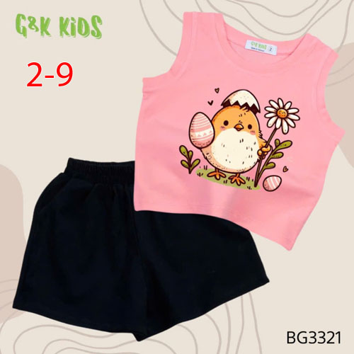 A506405 - Bộ quần đùi áo sát nách bé gái thun coton 4c in gà con_Size 2-9