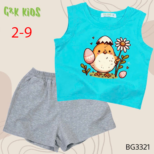 A506407 - Bộ quần đùi áo sát nách bé gái thun coton 4c in gà con_Size 2-9