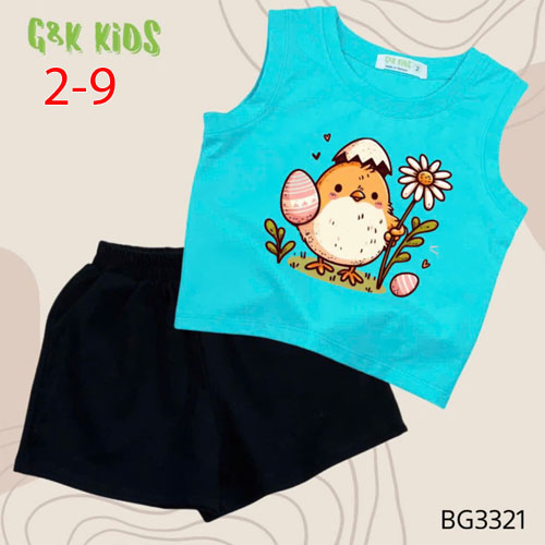 A506409 - Bộ quần đùi áo sát nách bé gái thun coton 4c in gà con_Size 2-9