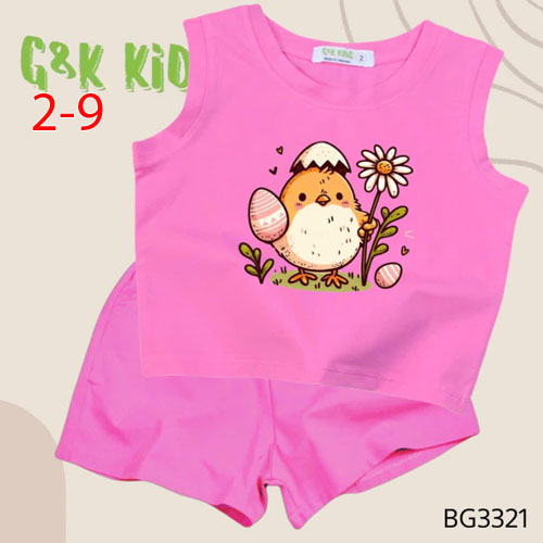 A506410 - Bộ quần đùi áo sát nách bé gái thun coton 4c in gà con_Size 2-9