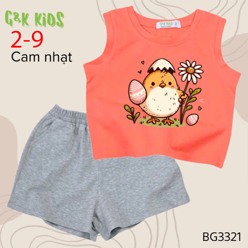 A506411 - Bộ quần đùi áo sát nách bé gái thun coton 4c in gà con_Size 2-9