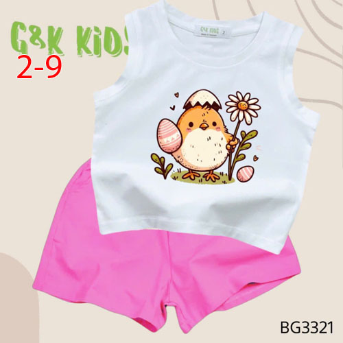 A506412 - Bộ quần đùi áo sát nách bé gái thun coton 4c in gà con_Size 2-9