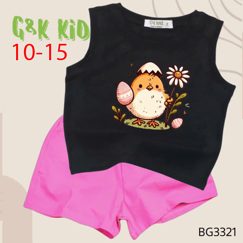 A506417 - Bộ quần đùi áo sát nách bé gái thun coton 4c in gà con_Size 10-15