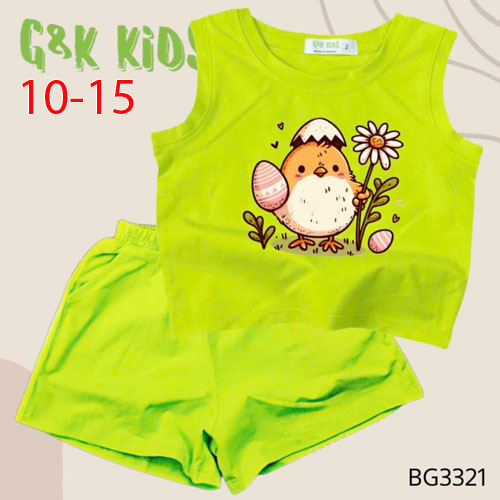 A506419 - Bộ quần đùi áo sát nách bé gái thun coton 4c in gà con_Size 10-15