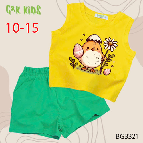 A506422 - Bộ quần đùi áo sát nách bé gái thun coton 4c in gà con_Size 10-15
