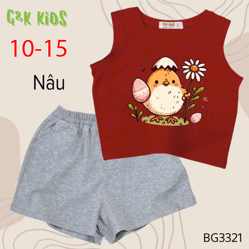 A506424 - Bộ quần đùi áo sát nách bé gái thun coton 4c in gà con_Size 10-15