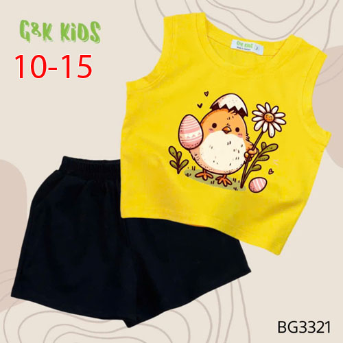 A506426 - Bộ quần đùi áo sát nách bé gái thun coton 4c in gà con_Size 10-15