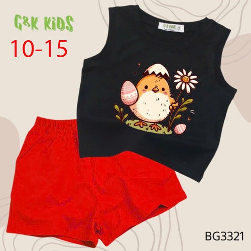 A506430 - Bộ quần đùi áo sát nách bé gái thun coton 4c in gà con_Size 10-15