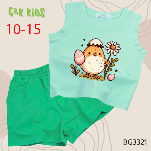 A506432 - Bộ quần đùi áo sát nách bé gái thun coton 4c in gà con_Size 10-15