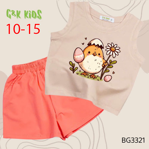 A506433 - Bộ quần đùi áo sát nách bé gái thun coton 4c in gà con_Size 10-15