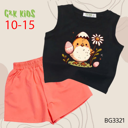 A506434 - Bộ quần đùi áo sát nách bé gái thun coton 4c in gà con_Size 10-15