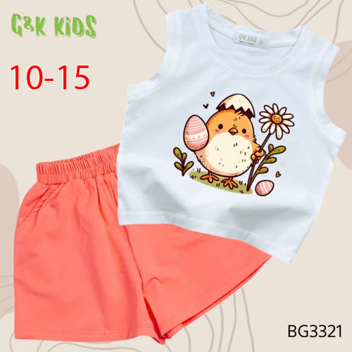 A506435 - Bộ quần đùi áo sát nách bé gái thun coton 4c in gà con_Size 10-15