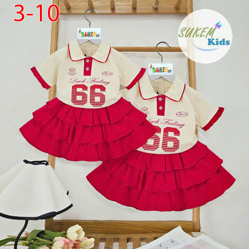 A506518 - Sét váy thể thao áo cổ trụ ngắn tay nhún bèo in số 66 chân váy cắt may 3 tầng nhún xòe_Siz