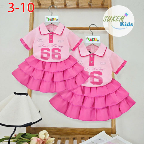 A506520 - Sét váy thể thao áo cổ trụ ngắn tay nhún bèo in số 66 chân váy cắt may 3 tầng nhún xòe_Siz