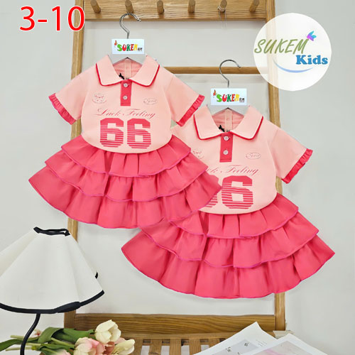 A506522 - Sét váy thể thao áo cổ trụ ngắn tay nhún bèo in số 66 chân váy cắt may 3 tầng nhún xòe_Siz
