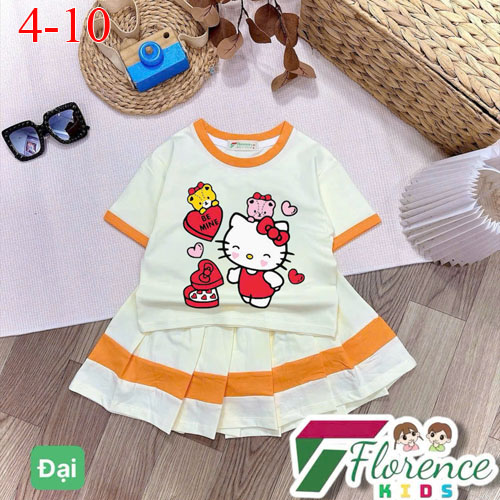 A506537 - Sét váy thiết kế siêu cute, màu sắc cuốn hút cotton 4c in cô bé Kitty con ngựa chân váy xế