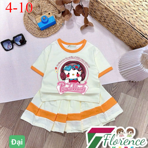 A506538 - Sét váy thiết kế siêu cute, màu sắc cuốn hút cotton 4c in cô bé Kitty con ngựa chân váy xế