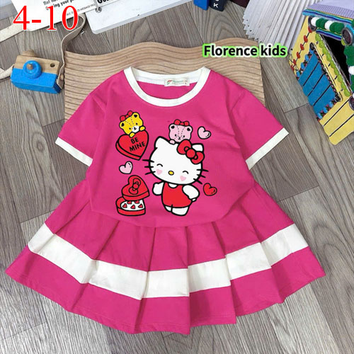A506542 - Sét váy thiết kế siêu cute, màu sắc cuốn hút cotton 4c in cô bé Kitty con ngựa chân váy xế