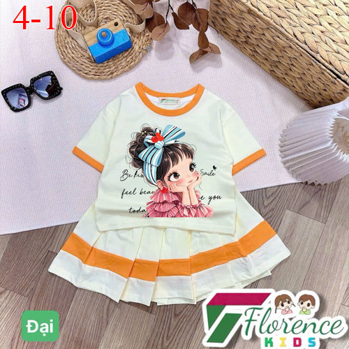 A506545 - Sét váy thiết kế siêu cute, màu sắc cuốn hút cotton 4c in cô bé Kitty con ngựa chân váy xế