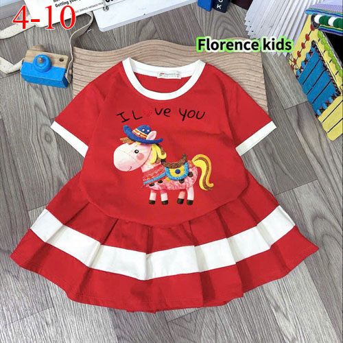 A506547 - Sét váy thiết kế siêu cute, màu sắc cuốn hút cotton 4c in cô bé Kitty con ngựa chân váy xế