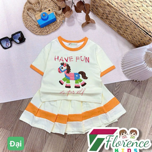 A506554 - Sét váy thiết kế siêu cute, màu sắc cuốn hút cotton 4c in cô bé Kitty con ngựa chân váy xế