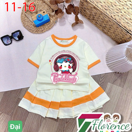 A506557 - Sét váy thiết kế siêu cute, màu sắc cuốn hút cotton 4c in cô bé Kitty con ngựa chân váy xế