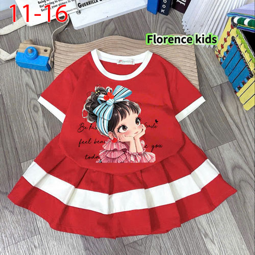 A506563 - Sét váy thiết kế siêu cute, màu sắc cuốn hút cotton 4c in cô bé Kitty con ngựa chân váy xế