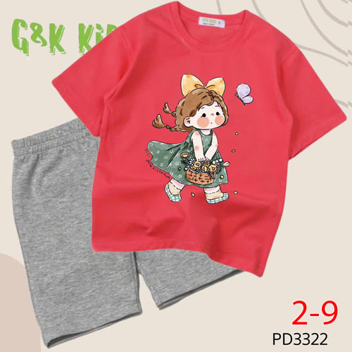 A506570 - Bộ áo phom rộng quần ngố bé gái chất thun coton 4c in cô bé_Size 2-9