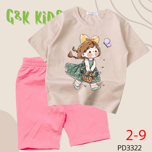 A506572 - Bộ áo phom rộng quần ngố bé gái chất thun coton 4c in cô bé_Size 2-9