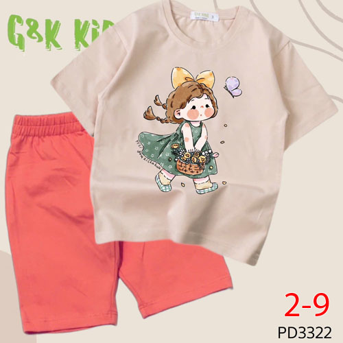 A506575 - Bộ áo phom rộng quần ngố bé gái chất thun coton 4c in cô bé_Size 2-9